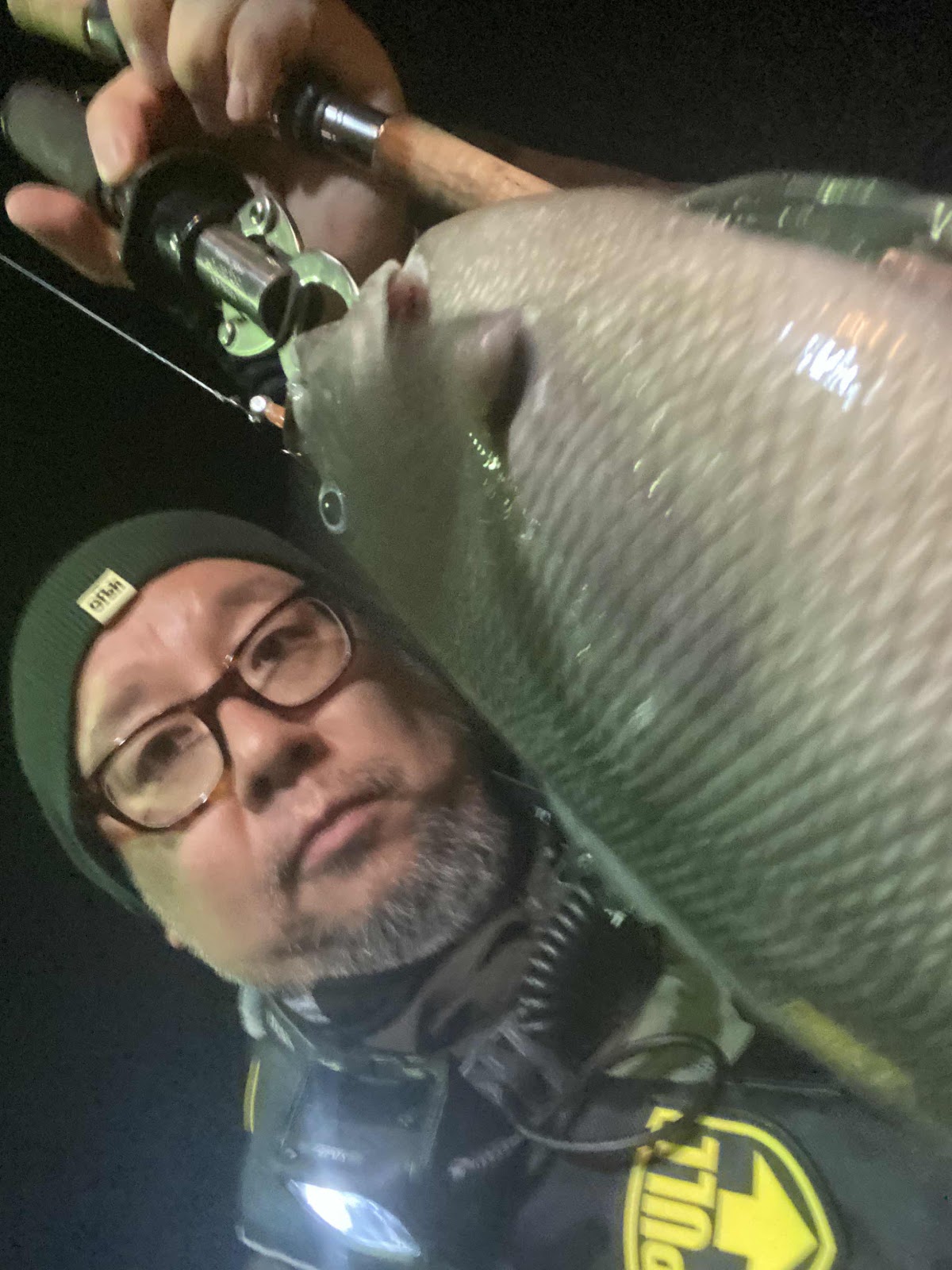 予備のアジングタックルでヘチを探るとガッ、ゴゴゴジーって感じで謎のブレイク。