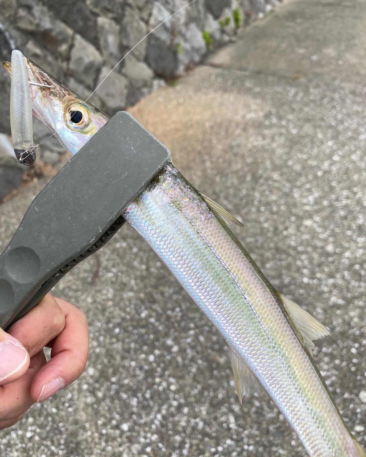 ココンッと当たり、カマス足元でバラし。